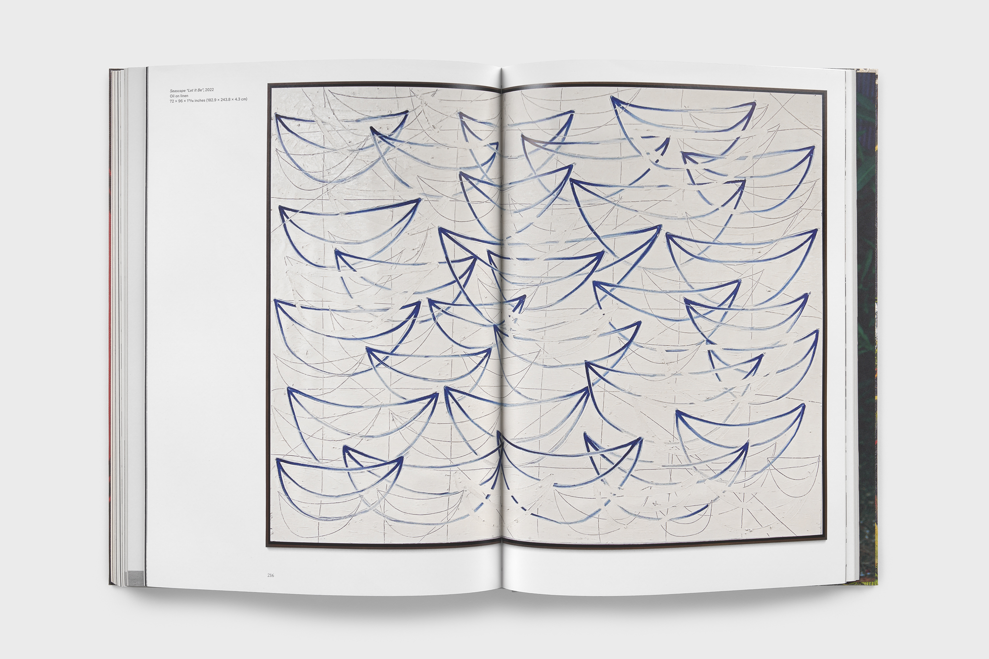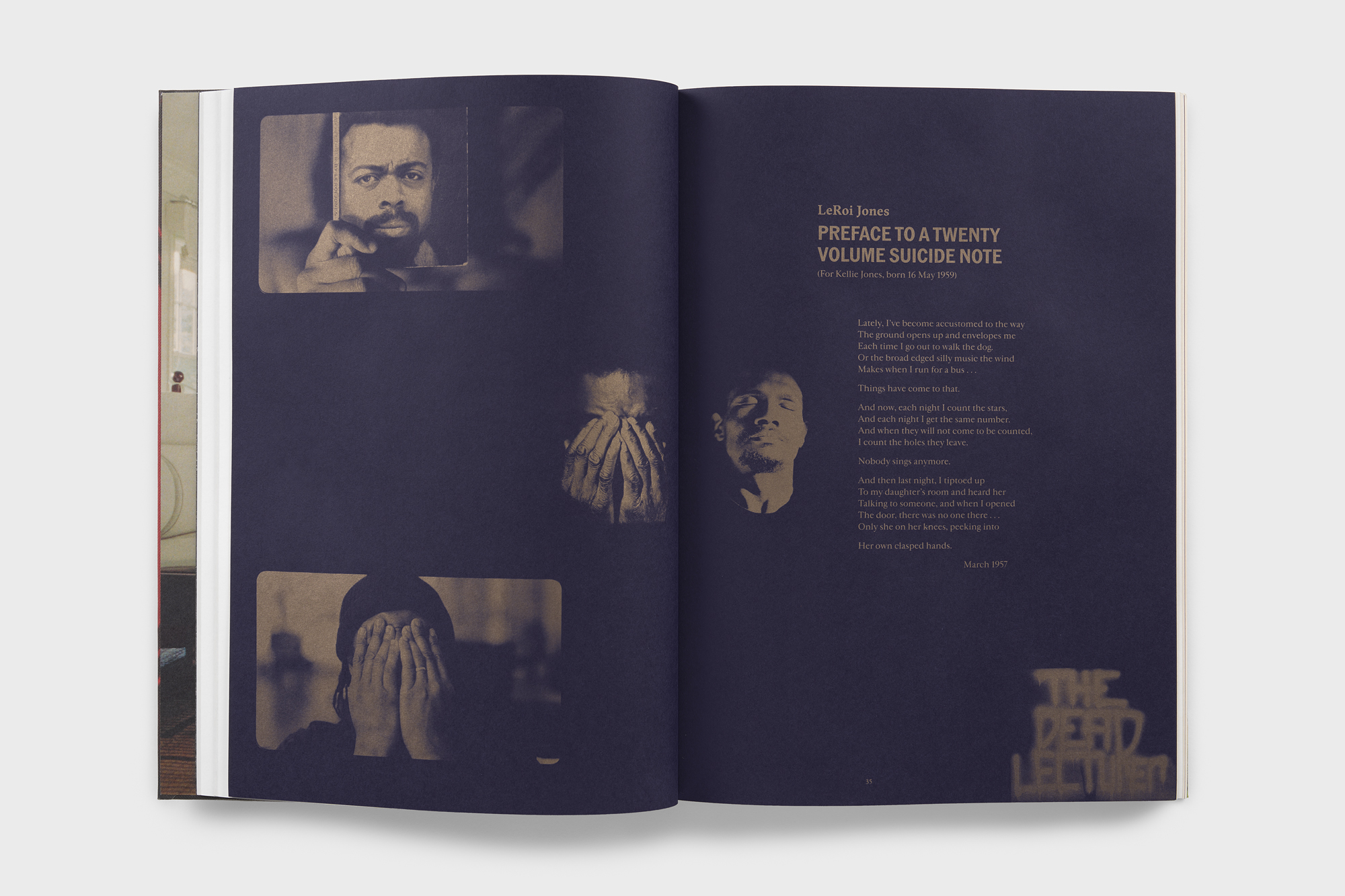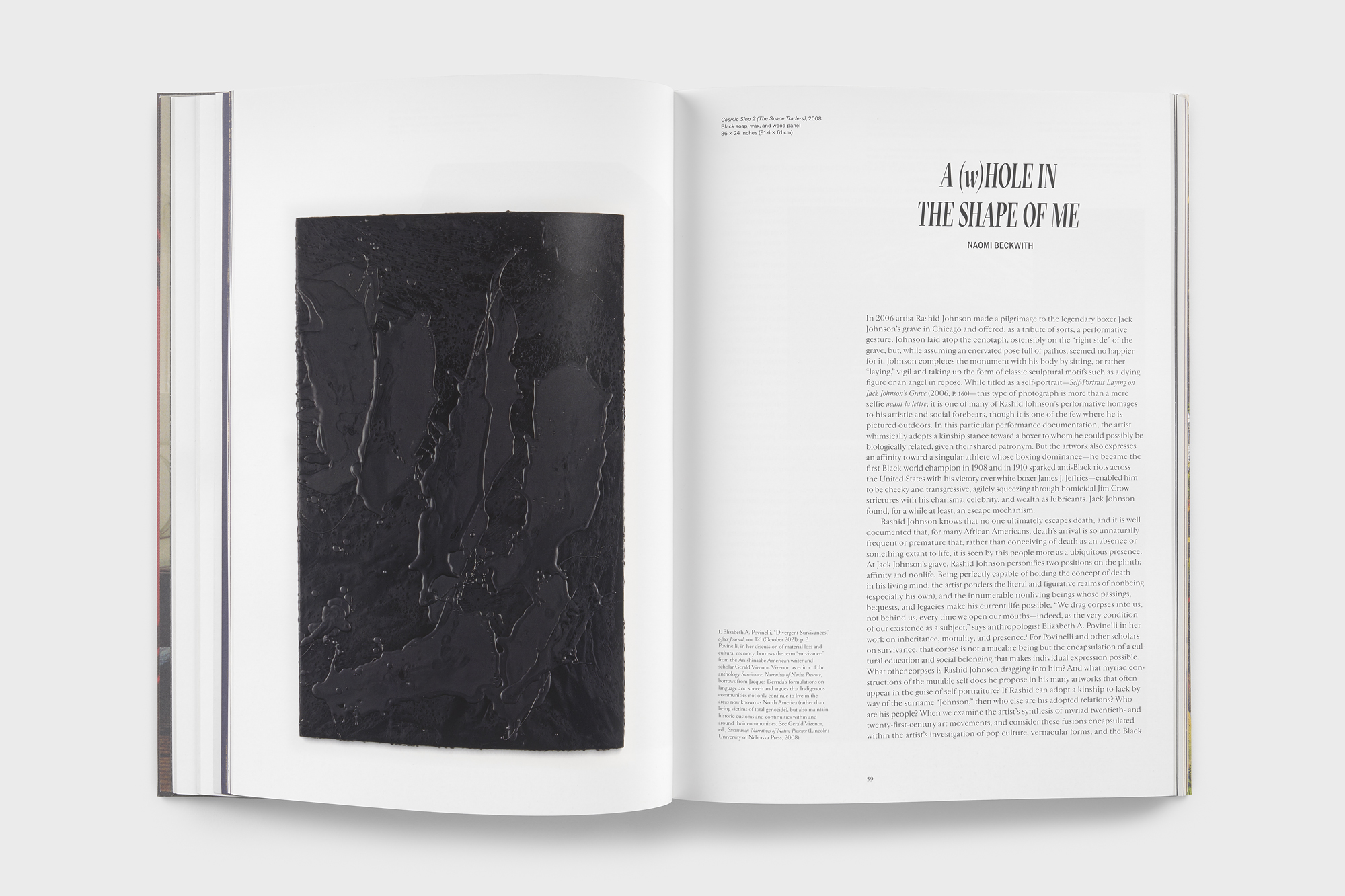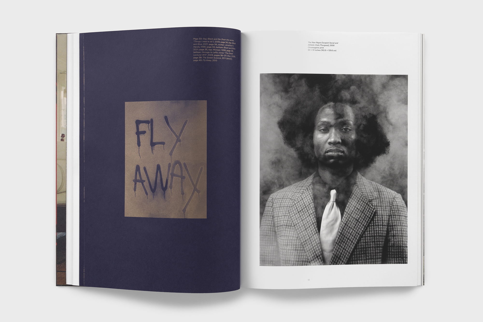 Designed for the artist Rashid Johnson and his 2025 Guggenheim survey of the same name, this book functions as a hybrid museum catalogue and artist’s book. Alongside scholarly essays and plates, it includes several resting areas—“design interventions” where readers can engage with Johnson’s work in a more contemplative, pre-linguistic way. These sections shift paper and color palettes, crop images closely, experiment with collaging, and pair visuals with recurring literary references, including LeRoi Jones’s 1959 poem that inspired the exhibition’s title.