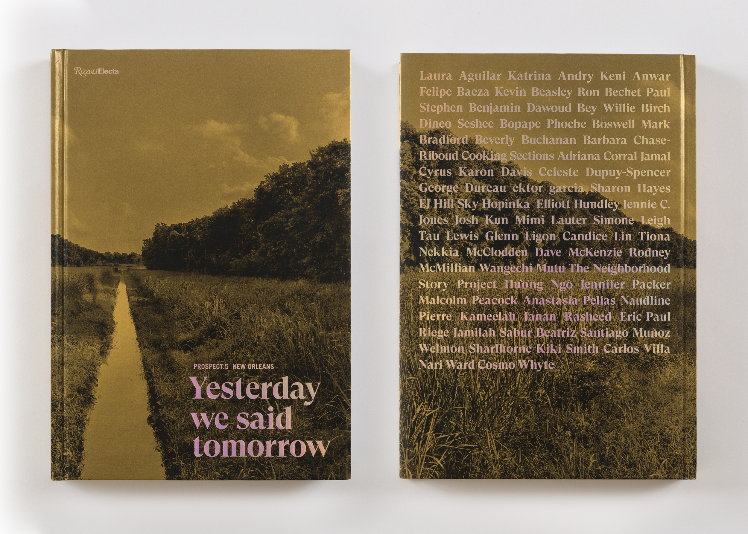Prospect New Orleans is a citywide contemporary art triennial that was conceived in the aftermath of Hurricane Katrina, presenting site-specific artworks by local, national, and international artists that ask for a reconsideration of the past through social and political considerations of the present. The accompanying catalog—a rich collection of contributions from curators, poets, artists, and cultural critics—considers several key themes that animate the ambitious artist projects: history and haunting; landscape and the natural world; performance, ritual, and the public sphere; and intimacy, life, and death. The moody use of gold and black takes on this haunting in an effervescent tingle of a more hopeful and better future. On view until January 23, 2022.